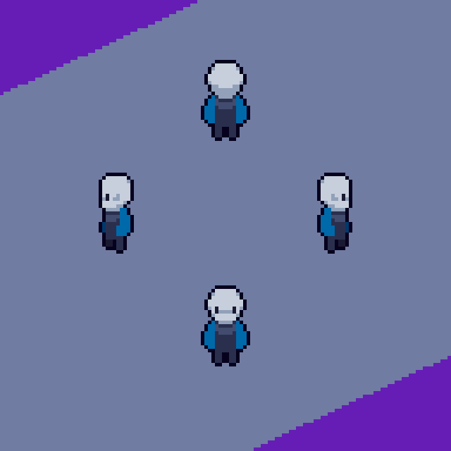 It has 2 models, one 16x16 and the other 32x32 pixels, animated in 4 directions.